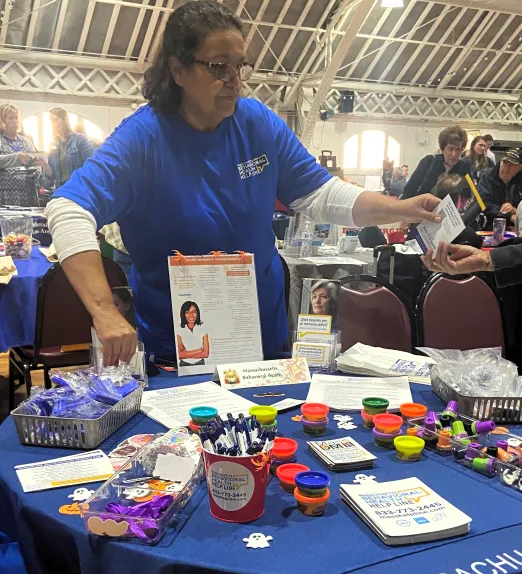 Librarian Sharon Bernard speaks with guests during a past year’s Community Resource Fair in Fitchburg. This year the Fitchburg Health Department will hold a Health Resource Fair from 4 to 7 p.m. on Thursday, Sept. 25, 2025 at the Fitchburg Armory. (SENTINEL & ENTERPRISE / Ashley Green)