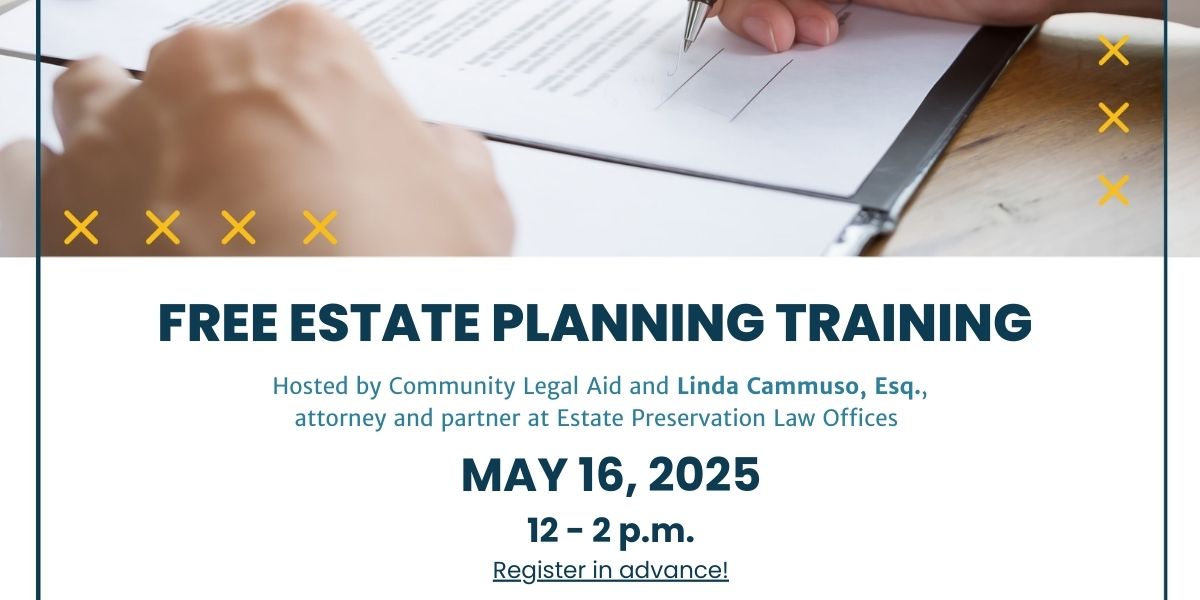 Join Community Legal Aid (CLA) and Linda Cammuso, Esq. for a comprehensive virtual training on how to prepare estate planning documents, including Wills, Health Care Proxies, and Powers of Attorney. New practitioners are encouraged to attend.