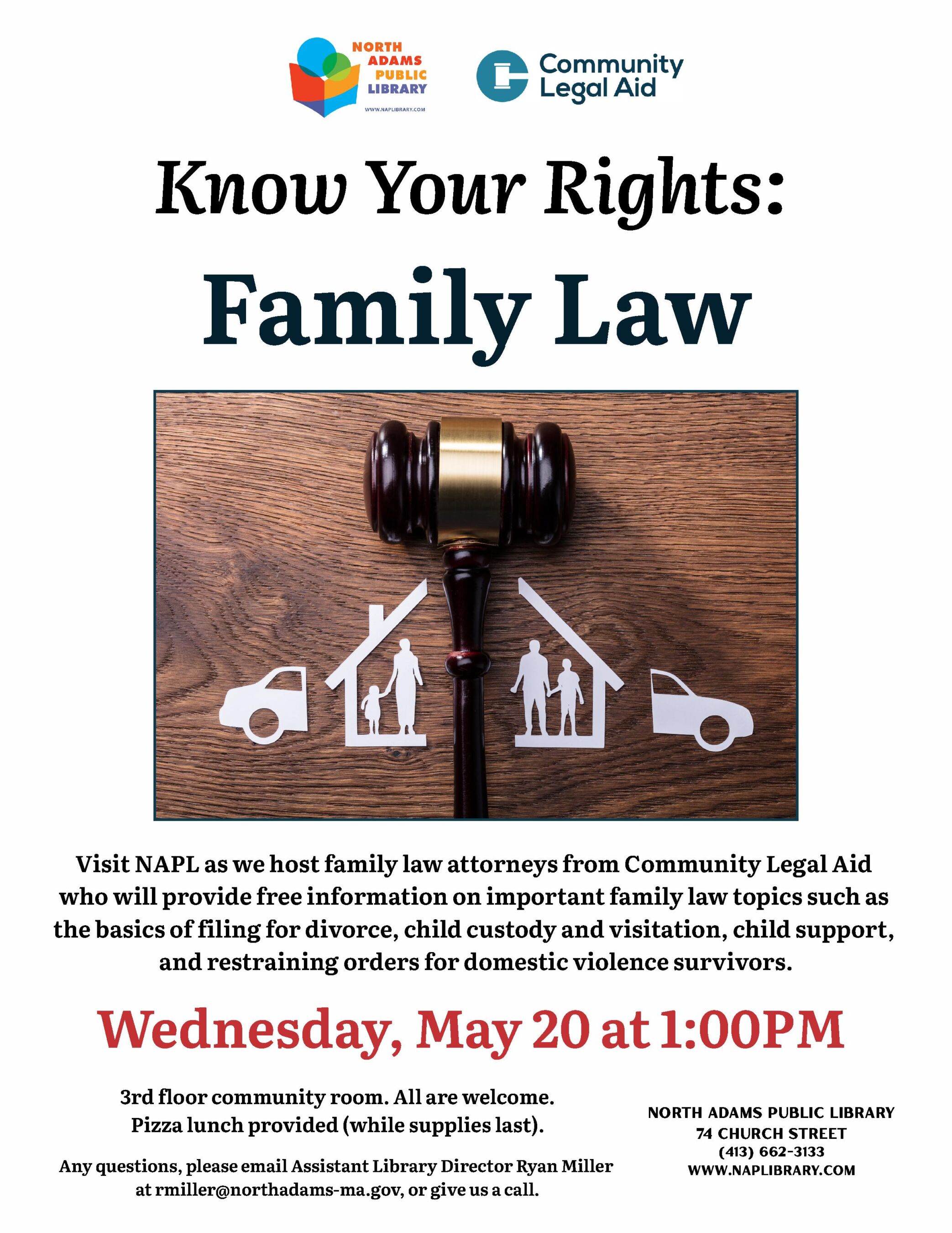 North Adams Public Library will host family law attorneys from local non-profit Community Legal Aid who will provide information on… |